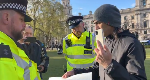 Met Police in London threatening @GhorbaniiNiyak with an arrest for holding a ‘Hamas Are Terrorists’ sign again. pic.twitter.com/CuaaZnRzOU
