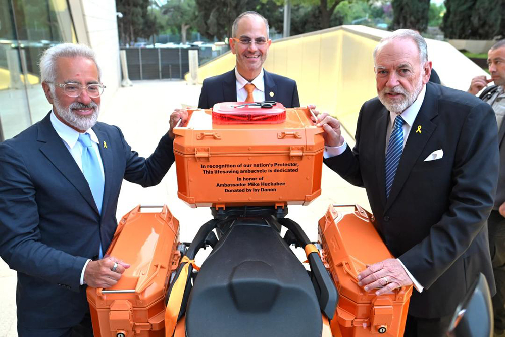 In honor of Huckabee’s recent diplomatic appointment and to commemorate his steadfast advocacy, United Hatzalah board member Isy Danon also dedicated a newly donated Ambucycle in the ambassador’s name. Ambucycles—rapid-response motorcycles equipped with life-saving medical gear—are central to United Hatzalah’s emergency response model, which boasts an average response time of just 90 seconds across Israel.