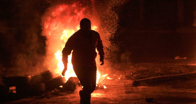 An improvised explosive device was set off as the soldiers passed by, and dozens of people were injured in related clashes.