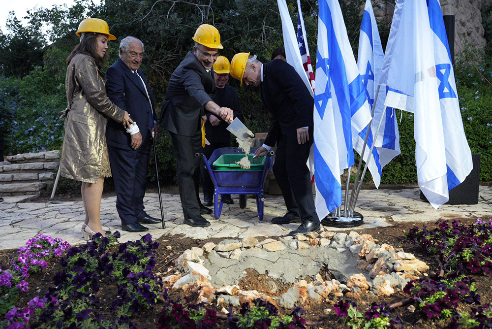 The President of Israel, the president of the Hebrew University, the mayor of Jerusalem, and art collector Jose Mugrabi laid the cornerstone of a house to display Einstein’s legacy