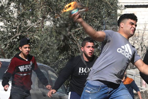 Footage of the incident seen by TPS shows the terrorist, wearing a black mask and a red shirt, throwing a firebomb toward Kever Rachel. He then waits a bit to see what happens, takes off his mask, turns around and runs.