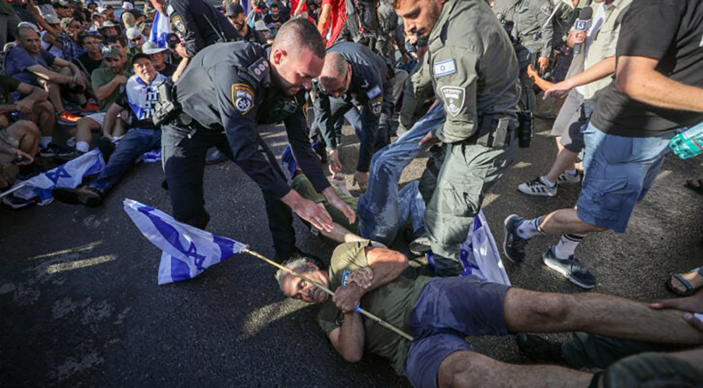Israeli police had to disperse and forcibly move dozens of protesters who blocked the roads around the Knesset Monday morning, as reported by The Times of Israel.