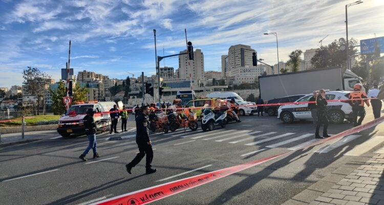 The Magen David Adom ambulance service said its medics declared the death of a 24-year-old woman at the scene and was taking eight others to hospitals in Jerusalem.