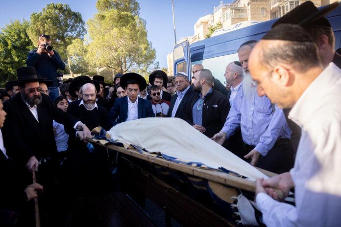 The funeral of Ariel Shttuzpik who was killed earlier today in a terror attack when two explosions at two bus stops one at the entrance to Jerusalem and one in Ramot left one person killed and at least another 13 injured. Photo by Yonatan Sindel/Flash90