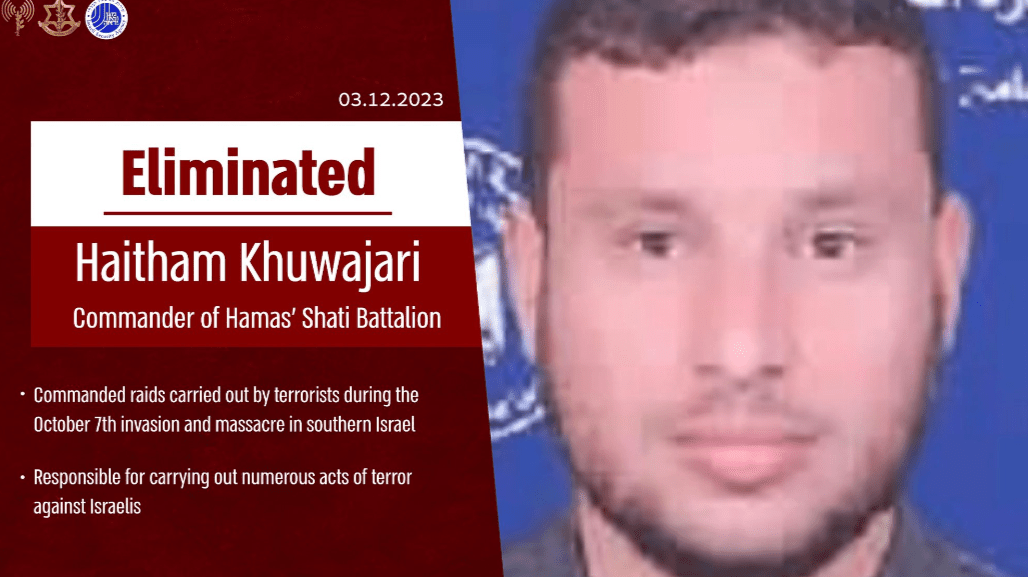 The IDF and Shin Bet say they eliminated by airstrike Haytham Khuwajari, commander of Hamas’ Shati Battalion, in a joint operation.