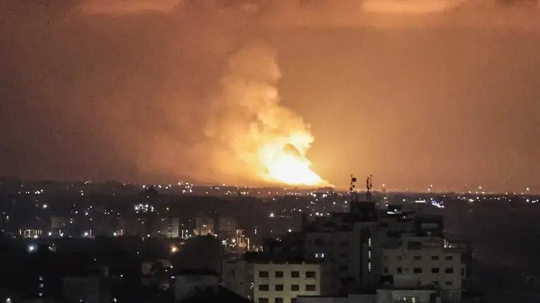 (A7)Following a barrage of rockets fired at central and southern Israel Saturday evening, IDF aircraft struck terror targets in Gaza.
