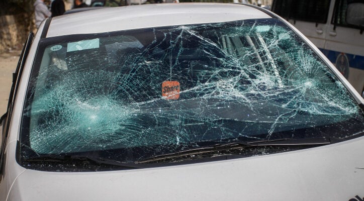 “They were bringing stones and a traffic sign and throwing everything against the car. After one or two minutes they pulled out a knife and stabbed the wheels of the car, and also threatened my friend.”