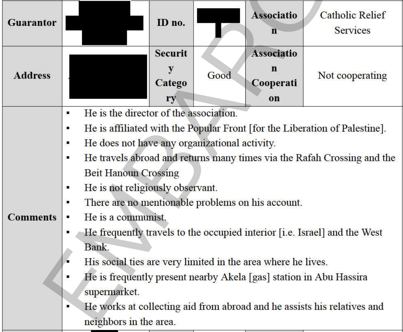 Hamas’s scheme relies on a system of “guarantors,” or local Gazans—primarily Hamas loyalists and intelligence operators—who serve as points of contact between aid organizations and the terror group’s leadership. In order for NGOs to operate in Gaza, Hamas requires that its guarantors “hold senior administrative positions” within the aid groups. The arrangement ensures that Hamas has “access to the highest levels of the NGOs’ local branches and operations,” according to NGO Monitor’s analysis of the documents.