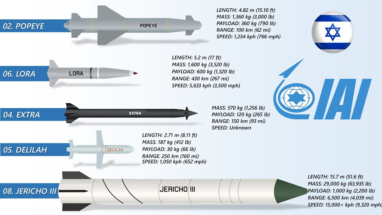 Shorter-Range Cruise Missiles: Platforms such as the Lora, Delilah, and Gabriel missiles offer additional precision strike capabilities.