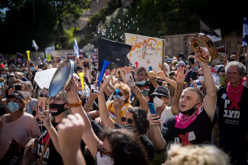 Thousands of #Israelis protesting throughout the country. Largest protest tonight in Tel Aviv. Thousands of unemployed, social workers, anti govt protesters & others protesting against the govt handling of #COVID__19 & economic crisis. @i24NEWS_EN pic.twitter.com/qDyGENMCEC