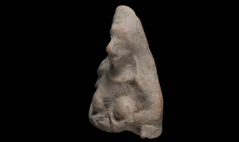 The figurine, depicting a bare-breasted woman wearing a scarf, is an amulet that was believed to protect children or increase fertility. Only one similar sample, also from the northern Negev, is preserved in Israel’s National Treasures collection.
