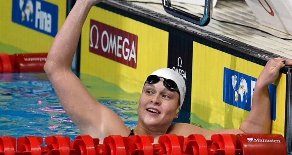 18-year-old Anastasia Gorbenko took first place in 50m. breaststroke and 100m. medley competitions in Abu Dhabi.