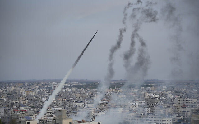 Monday: 5:00 p.m. A massive barrage of rockets was fired at central Israel, including at the capital, Jerusalem.