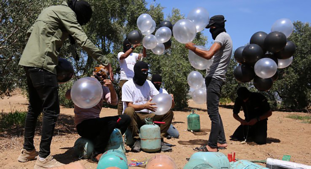 Terrorists attach firebombs and also explosive charges to the balloons, many of which have caused large brush fires when they detonate.