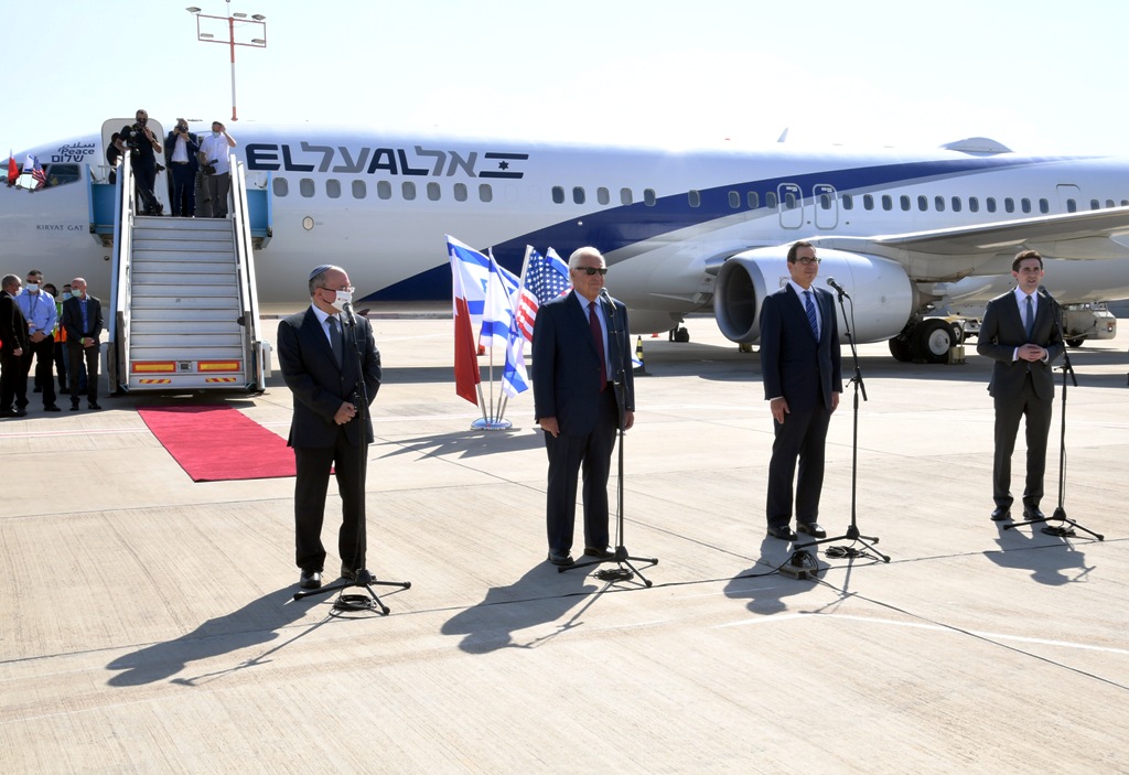 Israeli and American delegations left Tel Aviv and arrived in Bahrain on Sunday, a historic visit by an Israeli delegation to the Gulf country following the signing of the Abraham Accords last month, and the first-ever commercial flight from Israel to Bahrain.