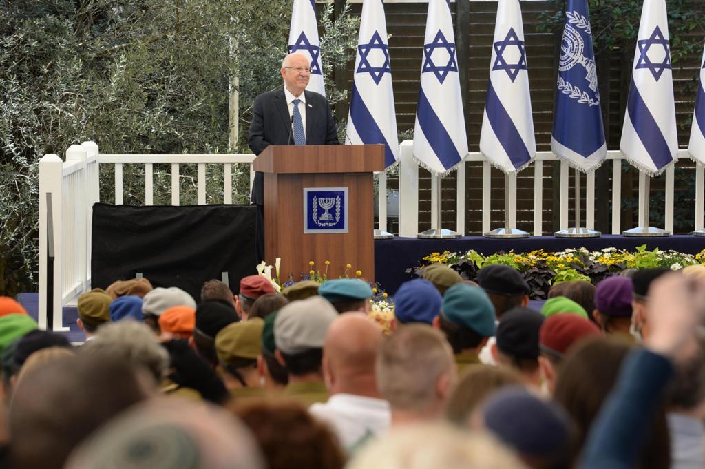 The second part, was broadcast live from the gardens of Beit HaNasi, and included the award ceremony for 120 outstanding soldiers. As is customary, the president, IDF Chief of Staff and a representative of the soldiers delivered remarks.