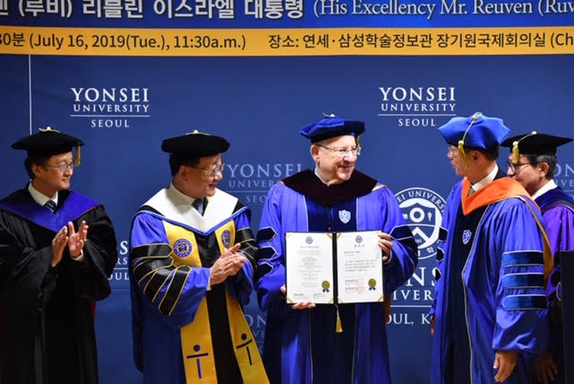 An honorary doctorate in law was awarded to President Reuven (Ruvi) Rivlin today, Tuesday July 16 / 13 Tammuz, in a ceremony held at Yonsei University in Seoul.