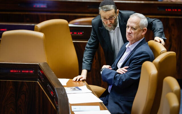 Gafni reportedly used Tuesday’s meeting as an opportunity to reach out to Gantz, telling him that he hopes the centrist National Unity party can be brought into the government to “balance” the influence of the right-wing parties Otzma Yehudit and the Religious Zionist Party.