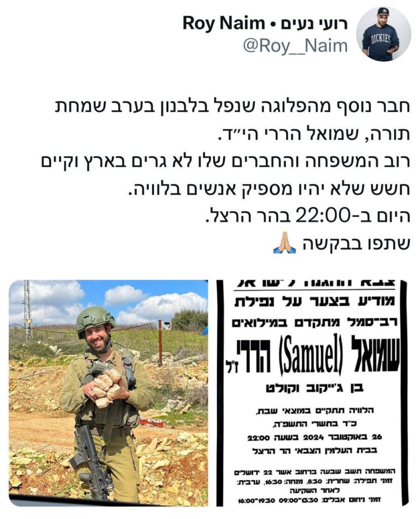 The Syrian-Jewish community also mourns alongside the Harari family, where members remembered Shmuel as a young boy in Brooklyn. In a notice to community members issued moments after the conclusion of Shabbat, they stated, “It is with tremendous sorrow and pain that we regret to inform you of the passing of Shmuel ben Collette, Sgt. Major Sammy Harari, A’H.”