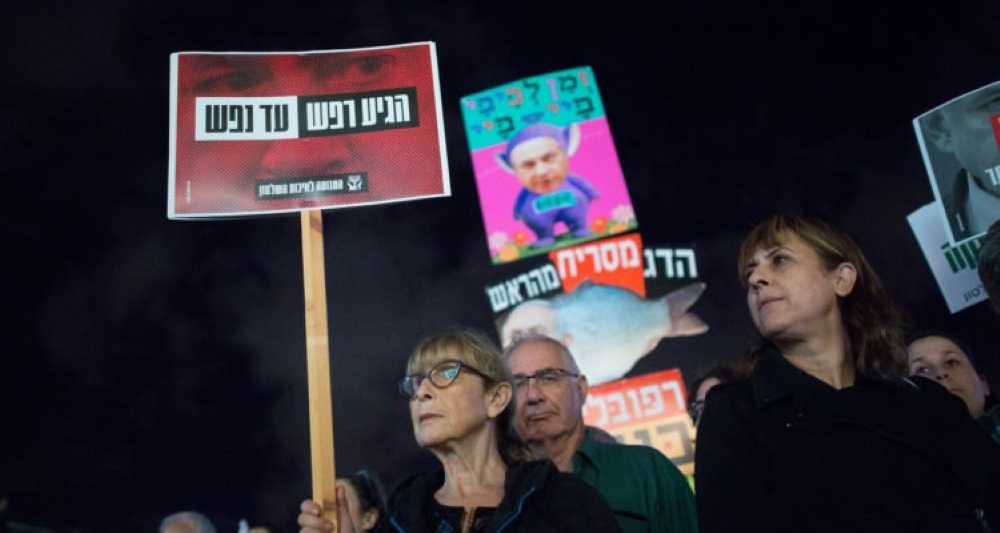 The demonstration follows a pro-Netanyahu rally held on Tuesday night in the same location in Tel Aviv, at which thousands of people rallied in support of the prime minister in what was intended to be a show of strength for the Israeli leader as he battles a corruption indictment and a possible rebellion within his own party.
