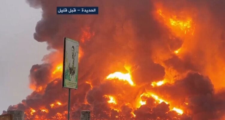 Al Hudaydah port in Yemen keeps burning and all their oil reserves are going up in flames, more than 24 hours after Israel’s bombing 👇