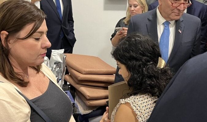 The delegation included Republicans Mitt Romney (Utah) and Bill Cassidy (Louisiana), along with Democrats Schumer (New York), Jacky Rosen (Nevada) and Mark Kelly (Arizona).