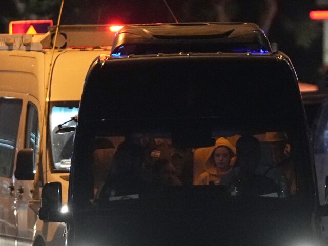 In one video, Israeli mother Sharon Avigdori, 52, and her daughter Noam Avigdori, 12, are seen being walked to a Red Cross vehicle. A masked Hamas terrorist tells them, in English, “Bye now.” As they are seated (0:17), he orders gruffly: “Keep waving.”
