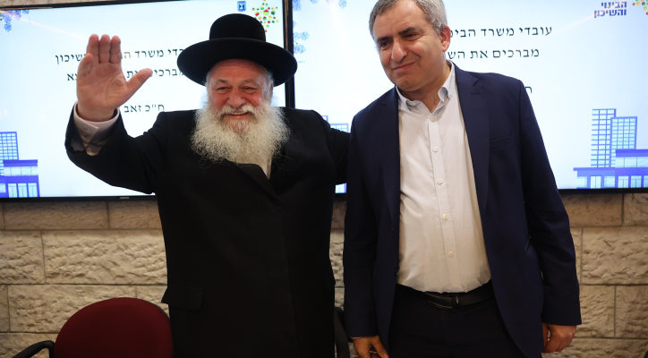 In the official hand-over ceremony from the outgoing minister, Ze’ev Elkin, to the head of UTJ’s Chasidic faction, Goldknopf assured his audience that he has come to serve all citizens equally, and “to promote the settlement of the land.”