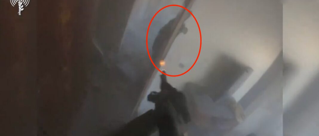The video depicts the soldier calmly shooting a Hamas combatant, then surviving a blast from a grenade thrown at him from another Hamas fighter. The soldier then enters the room and shoots a second combatant at point black range.