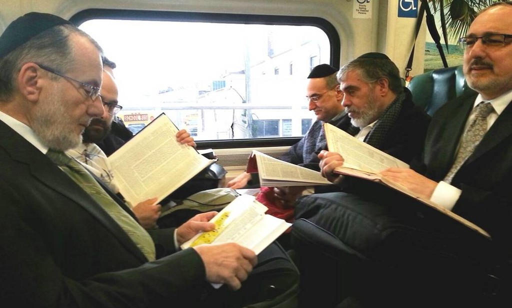 Daf Yomi can be studied alone, with a chavrusa (study partner), in a daily shiur (class) led by a rabbi or teacher, via a telephone shiur, CD-ROM, or audio and online resources. Typically, Daf Yomi shiurim are held in synagogues, yeshivas, and offices. They also take place in Wall Street board rooms, and on the Long Island Railroad, in the last car of two commuter trains departing Far Rockaway at 7:51 am and 8:15 am, respectively, for Manhattan. Daf Yomi shiurim have been piped into the in-flight sound system of El Al flights. A typical Daf Yomi shiur lasts one hour. Participants study the text together with the commentary of Rashi.