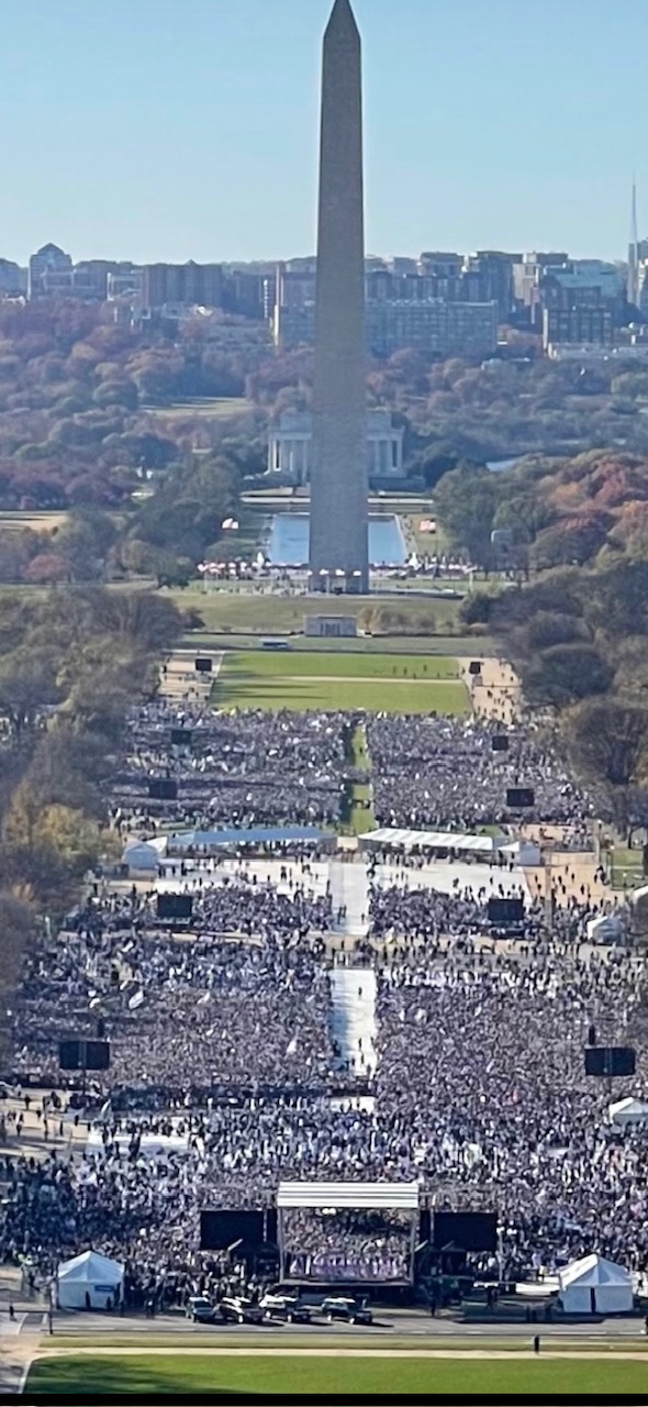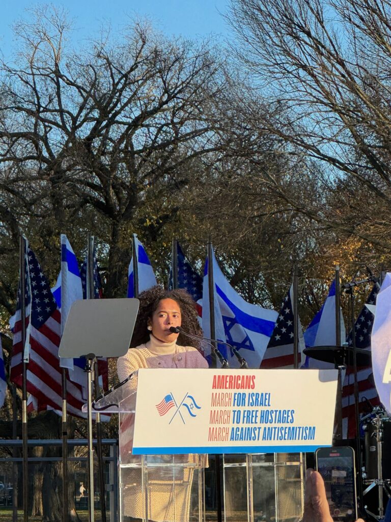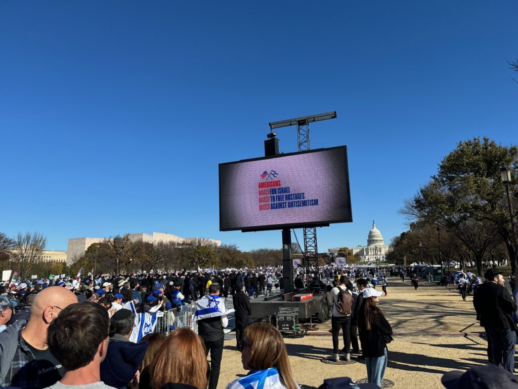 Evangelist Pastor John Hagee waxed poetic as he implored the crowd to chant “Israel you are not alone.” He warned those that seek to justify the slaughter of Israelis that Israel is not merely a state but “the apple of God’s eye, the shining city on the Hill, and G-d’s first born son.” While most buses required attendees to leave at 2:30 PM due to crowded Metro stations and unforgiving traffic the best was undeniably saved for last. Black, Native American Columbia University student Noa Fay said she would not be silenced as she critiqued the 100 Columbia University professors advocating for the destruction of Israel. Fay said, “we are the Jews of the Diaspora, this is how we fight. We fight loudly and peacefully. We are far from helpless, we are far from hopeless.” Impassioned actor Michael Rapaport said he he never felt prouder to be a Jew-a sentiment reiterated by many. The magic concluded with Israeli superstars Omer Adam and Ishay Ribo who have been entertaining wounded soldiers and IDF combatants non-stop since October 7th.
