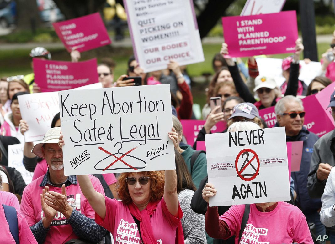 The protesters held signs that read, “Fund abortion, not cops,” and “Abortion on demand, end Hyde now,” a reference to the Hyde Amendment, a longstanding federal provision that prohibits taxpayer funding of abortion.