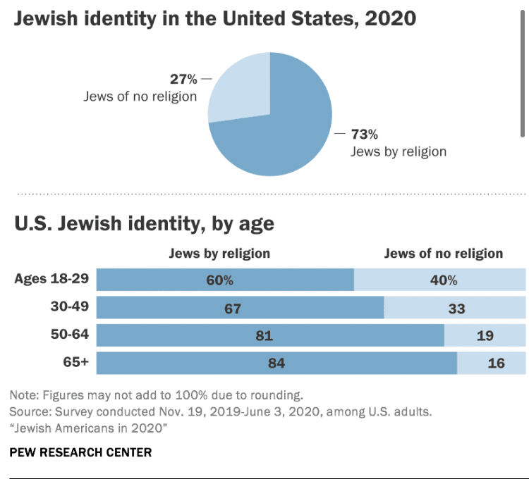 Another concerning trend is that younger generation Jews (ages18-29) are more likely to identify themselves as Jews of No Religion. See chart below.