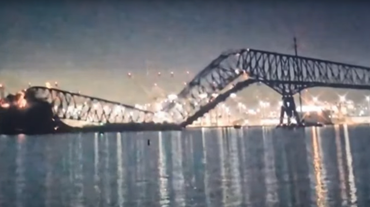 The Francis Scott Key Bridge in Baltimore, MD, completely collapsed after being struck by a ship.
