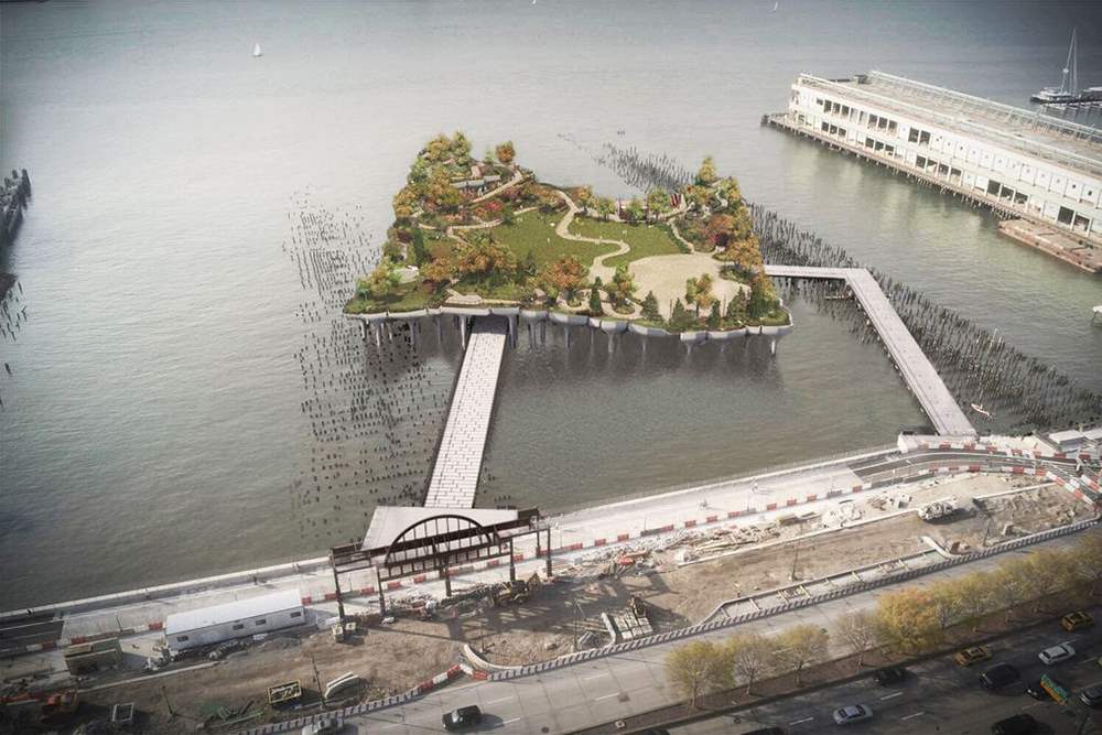 The park, named after Mr. Diller, will feature a performing arts center, with a 700-seat amphitheater for music, dance and theater productions. As reported by the NY Times, British designer Thomas Heatherwick, is creating a 2.4-acre platform which will seem to rise out of the river like a green Neverland. The supports surrounding the perimeter will appear as clusters of Champagne-glass-shaped planting pots seemingly sprouting from pilings beneath the riverbed. The addition of two walkways, which will connect the park to the shoreline and make it part of Hudson River Park, are also already underway.
