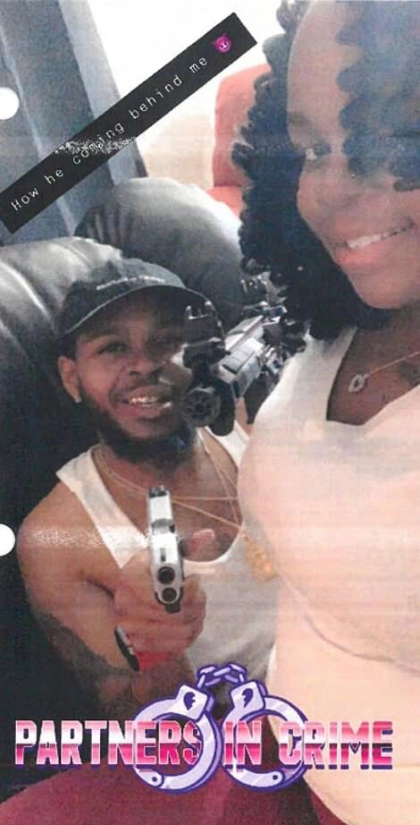 In this image, allegedly recovered from boyfriend Kenneth Walker’s phone, Taylor is pictured with him as he holds a silver and black Glock 9mm, which closely resembles the one used to fire on police during the raid.