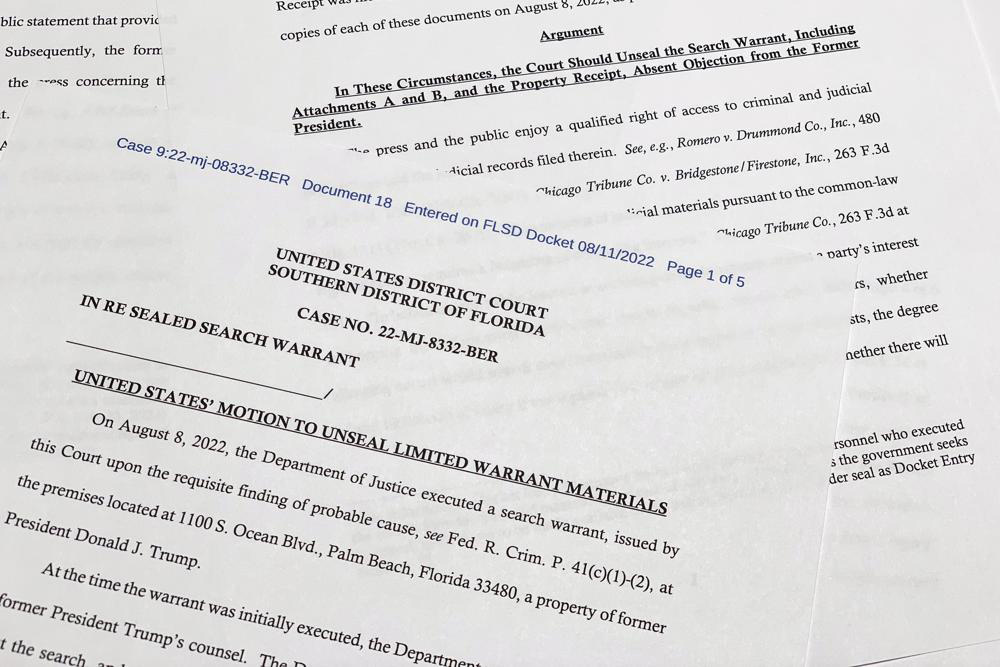 The government’s opposition came in response to court filings by several news organizations, including The Associated Press, seeking to unseal the underlying affidavit the Justice Department submitted when it asked for the warrant to search Trump’s Mar-a-Lago estate earlier this month.