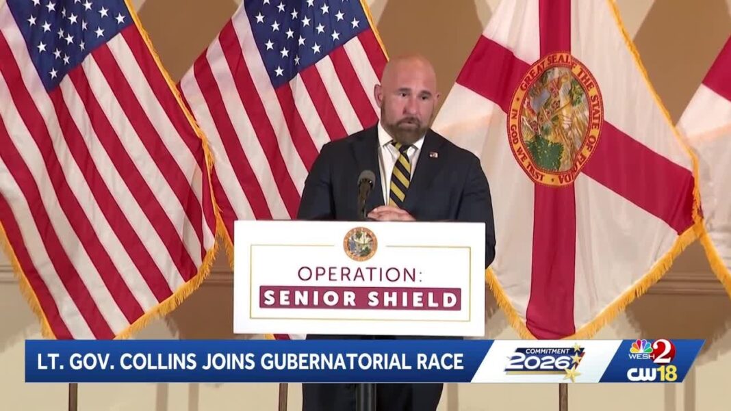 (AP) — Florida Lt. Gov. Jay Collins announced Monday that he’s running for governor in 2026, hoping to take over for term-limited Gov. Ron DeSantis.