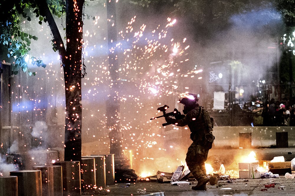 Agents have arrested 28 people in Portland this week, including seven from Thursday night’s protests, when they again used tear gas to force thousands of demonstrators from crowding around the courthouse. Protesters projected lasers on the building and tried to take down a security fence. They scattered as clouds of gas rose up and agents fired crowd control munitions.