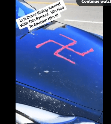 UNACCEPTABLE: A @lyft driver was riding around with a swastika on his hood.