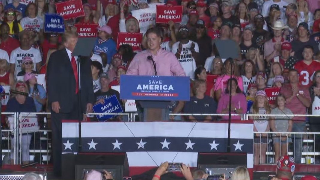 He appeared on stage with Trump at a “Save America Rally” on Saturday in Perry, Georgia. Now, his command is investigating whether the appearance violated the military ban on active-duty troops getting involved in partisan political activity, the outlet said.