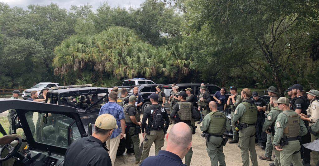 More than 50 North Port police officers, FBI agents and members of other law enforcement agencies searched the 24,000-acre (9,712-hectare) Carlton Reserve in the Sarasota, Florida area. Authorities used drones, scent-sniffing dogs and all-terrain vehicles to search the reserve, which has more than 100 miles (161 kilometers) of trails, as well as camping grounds. Investigators took some of his clothing from his parents’ home Friday night to provide a scent for the search dogs.