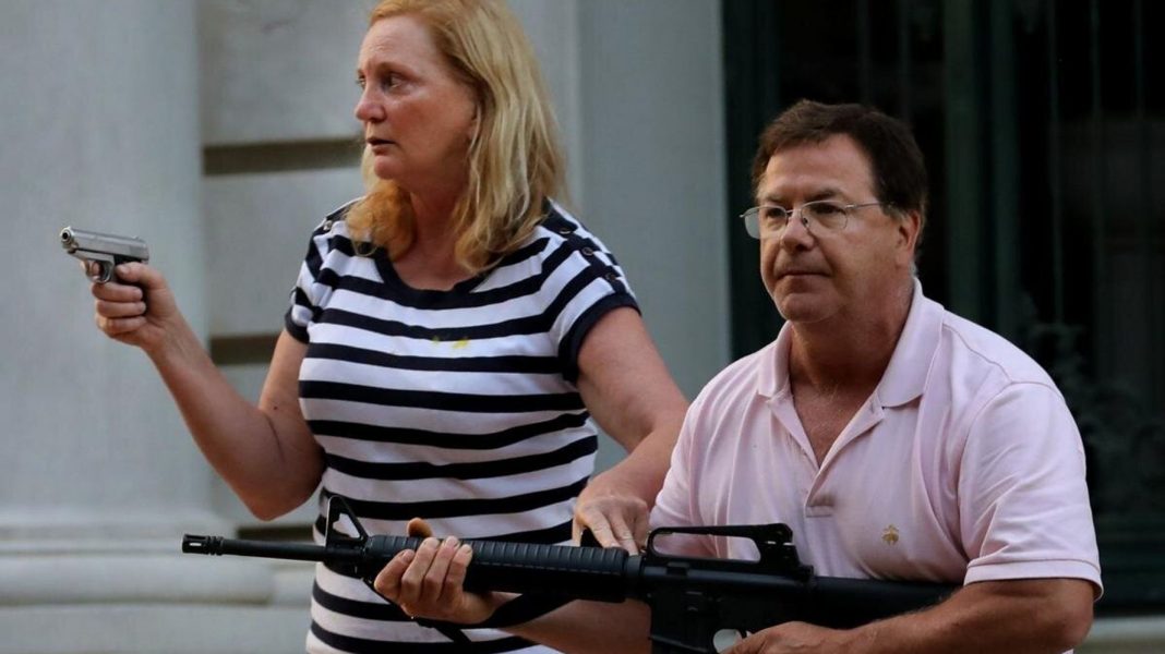 In a video posted to social media, peaceful protesters in St. Louis calling for police reforms walked past a couple brandishing firearms as they were ordered to stay away from the couple’s home https://t.co/bYl06iAiTo pic.twitter.com/wOZ1Wr3yac