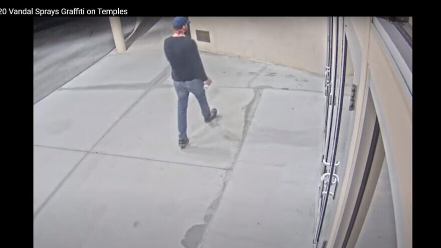 In a surveillance video released by the police, the suspect can be seen walking up to and spray-painting Temple Emanu-El at 2:15 a.m. on July 15. He then went to Temple Sinai, about five miles away, where he vandalized that building as well.