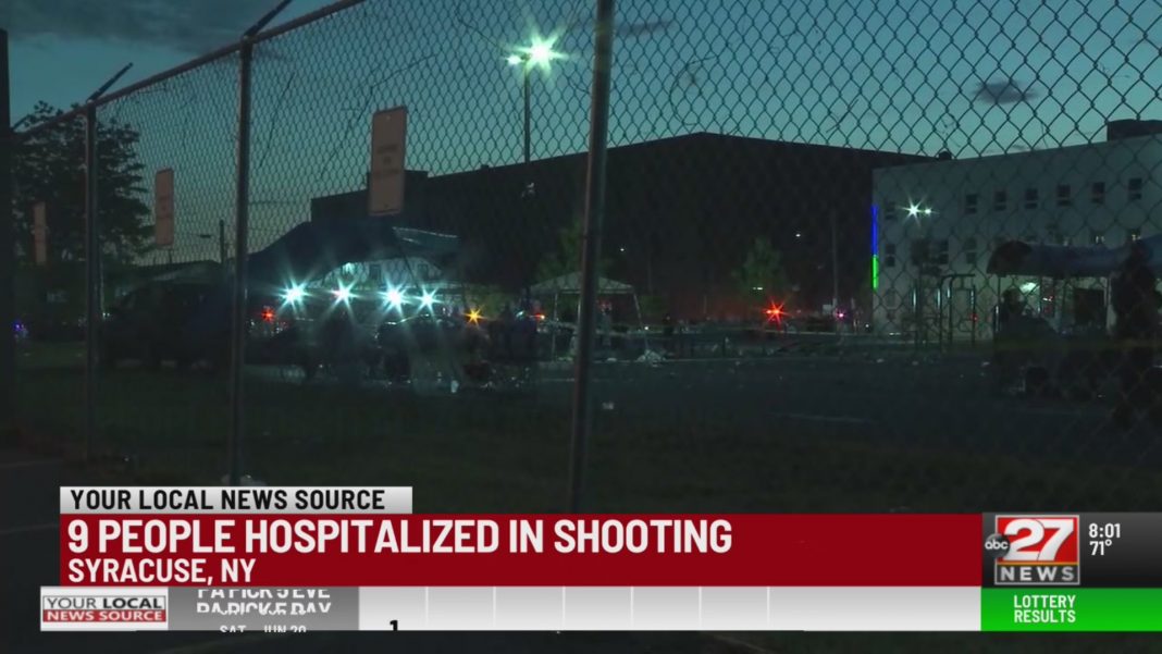 Also Saturday, nine people were wounded, including a 17-year-old boy who was wounded in the head, when someone began shooting at an outdoor party in Syracuse, in upper New York state.
