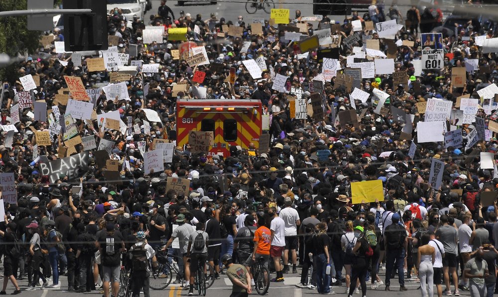 LOS ANGELES — Police have arrested nearly 1,400 people in 17 U.S. cities as protests continue over the death of George Floyd.