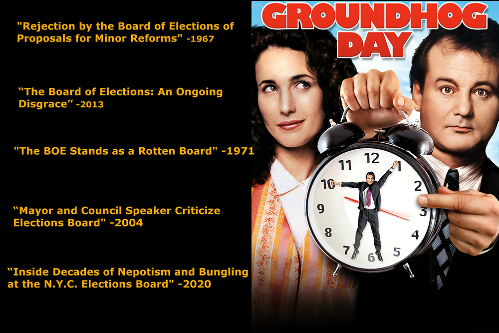 We all know that BOE is a patronage factory for the party bosses and elected officials that was created during the club house Tammany Hall era 100 years ago. It an election gatekeeper that protects right-wing conservative to far left incumbents elected officials along with the party controlled local courts, from challengers. It is a clown show of incompetence and corruption, that has disrupted several elections over the decades. It has survived a half century of calls and efforts to reform.