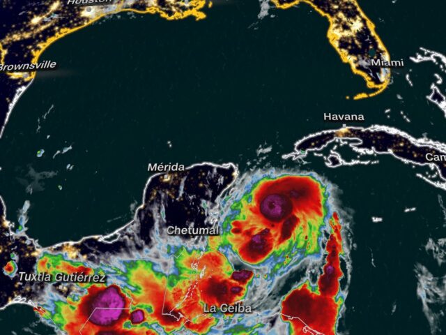 Mexico’s National Meteorological Service on Sunday warned of intense to torrential rains showering the Yucatan Peninsula, with winds as fast as 55 mph (89 kph).