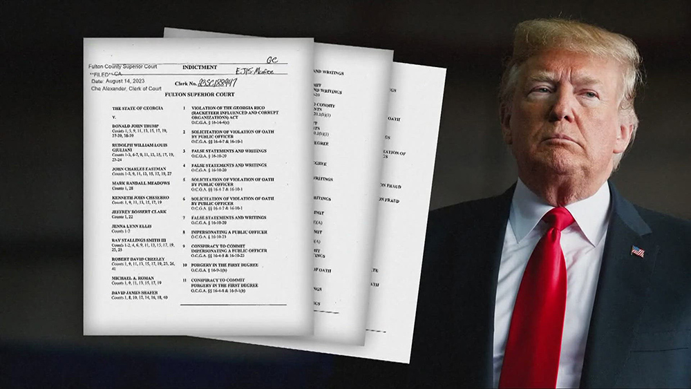 The 98-page indictment charges President Trump with 13 counts, including violation of the state’s Racketeer Influenced and Corrupt Organizations (RICO) Act, solicitation of violation of oath by a public officer, conspiracy to commit forgery in the first degree, and conspiracy to commit filing of false documents.
