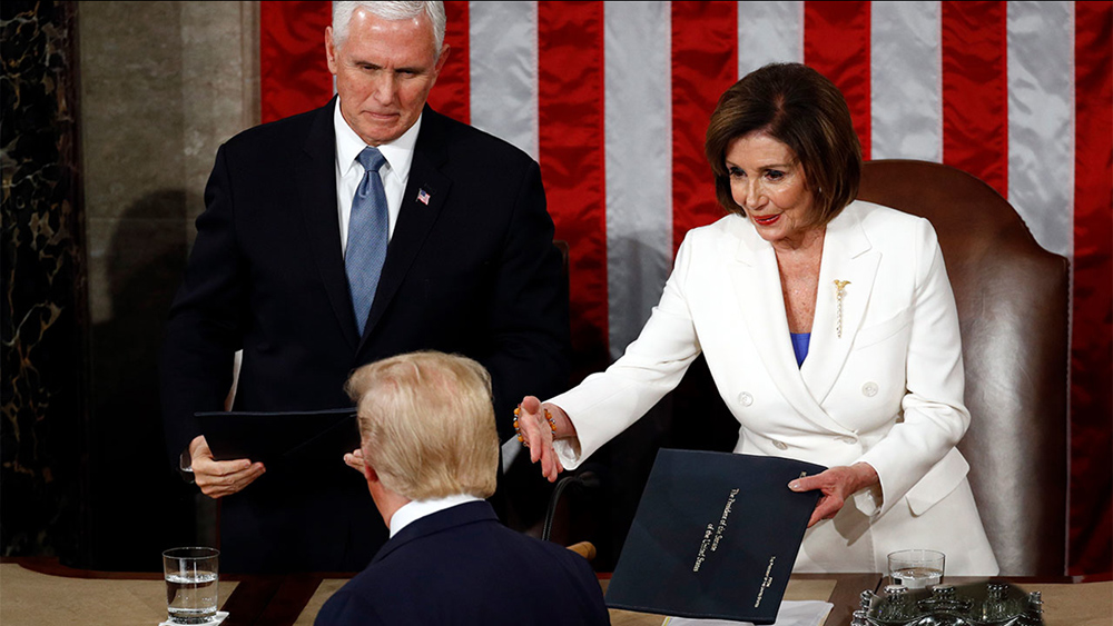 Besides sporadic booing and vocal jeers from Democratic party legislators, the big controversy of the evening occurred when the president handed his prepared remarks to Vice President Mike Pence and House Speaker Nancy Pelosi. It appeared that Trump ignored her when she reached out to shake the president’s hand.